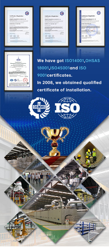 公司致力于耐火新材料、新技術、新產品的開發和推廣應用,是國家高新技術企業,產品先后通過了ISO9001質量管理體系、ISO14001環境管理體系、GB/T28001職業健康安全管理體系認證,同時具有防水防腐保溫工程專業承包貳級資質、冶金工程施工總承包叁級資質、環保工程專業承包叁級資質。